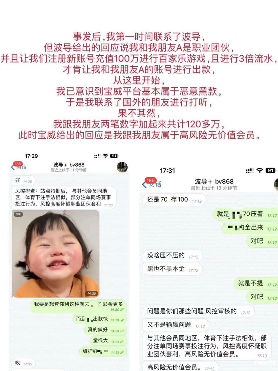 宝威杀猪盘 黑我120万人民币 出款告知需要再充100万进去才能出